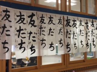 昨日行った校内書き初め大会の入賞者が決まり、作品に金紙が貼られました。登校した子ども達は、入賞者を確認しながら、友だちの作品のよさを感じているようでした。各学年の入賞者は、本日7日発行の学年だよりにてお知らせします。今年度は、感染防止のため書き初め展示会は中止となりましたが、作品は家に持ち帰るので、各家庭で頑張って書いた作品を見ていただきたいと思います。