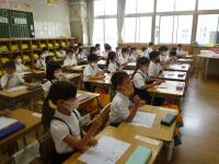 1年生の教室から元気な声が聞こえてきます。のぞいてみるとひらがなの練習中でした。