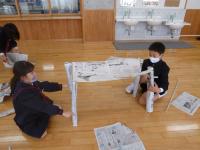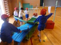 2年生はマット運動です。友だちと協力して上手にマットを運んでいます。