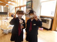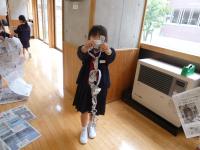 うまく丸めて剣にしたり、帽子や靴、テント、、思い思いに造形活動を楽しんでいました。