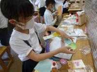 4年生は図工の時間にビー玉を転がすゲームを作っています。