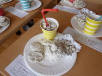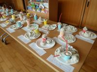 廊下には粘土で作ったおいしいプレートが展示されています。