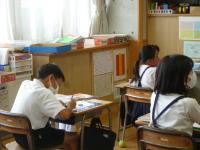 1年生は算数と音楽の授業です。算数では10より大きい数の学習をしています。音楽では歌いながら節のまとまりで言葉を入れながらつないでいくゲーム感覚の歌遊びを楽しんでいます。