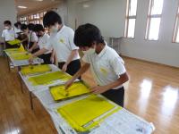 5年生は図工で木版画の制作中です。ローラーを使っての刷り方を練習しています。