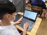 先生の説明をどの子も集中しながら聞いています。ローマ字入力が上手なのにびっくり!でした。