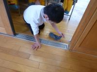 引き戸の桟やテレビ台など普段できないところを丁寧に掃除します。