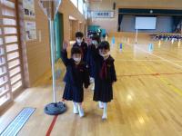 1年生が津幡町役場の方や警察の方から交通安全についてお話を聞きました。道路の歩き方、渡り方、信号のある交差点の渡り方など、命を守る大切なことを学びました。