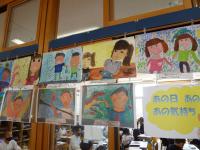 3年生の教室前には、子どもたちの生き生きとした作品が掲示されています。