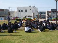 3年生が避難の仕方を一つ一つ確認しながら、ふれあい広場に避難しました。