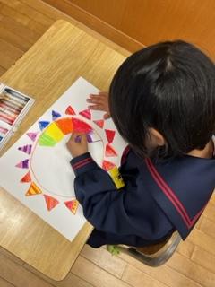 1年生が、図工の時間に「おひさま」を描きました。