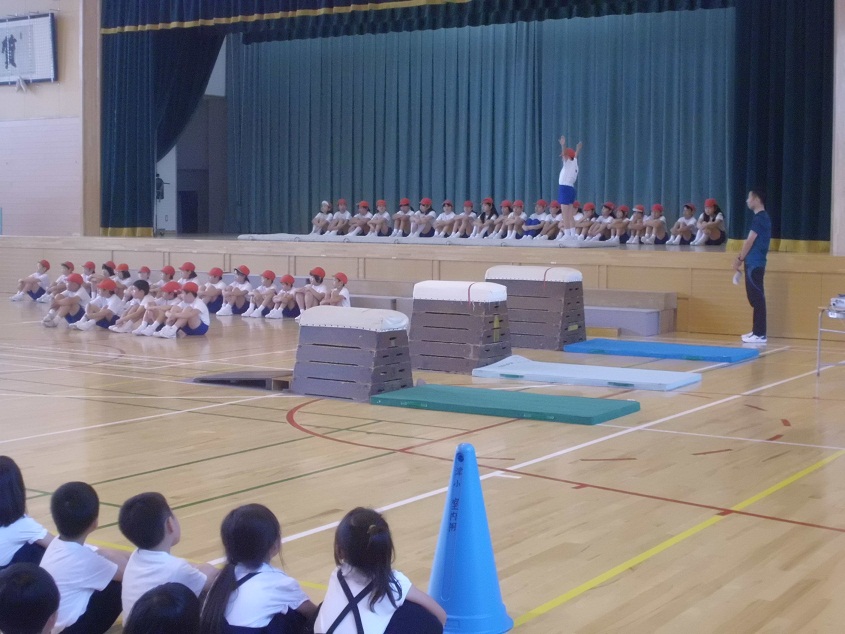 緊張で、いつも跳べる跳び箱にひっかかったり,マットでよろけたりする児童もいましたが