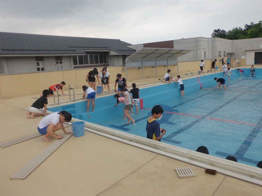みんなのために、6年生がプール掃除をしてくれました。
