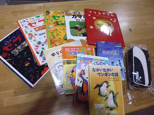 また、保護者の方から、10冊本をいただきました。子どもたちの大好きなシリーズものや、間違いさがし絵本など、楽しい本ばかりです。