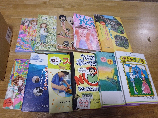 先日学校だよりでも紹介した地域の方から寄贈された図書カードで買わせていただいた本です。フレーベル社の「新刊読み物セット」物語やノンフィクション11冊です。