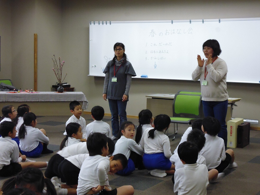 低学年は「これ だーれだ?」「はるにあえたよ」「うぐいすのホー」・手遊び