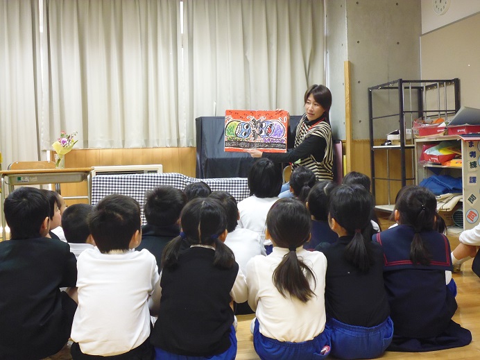 6年のお話会に先だって、全校の図書ボランティアさんの読み聞かせ会もありました。