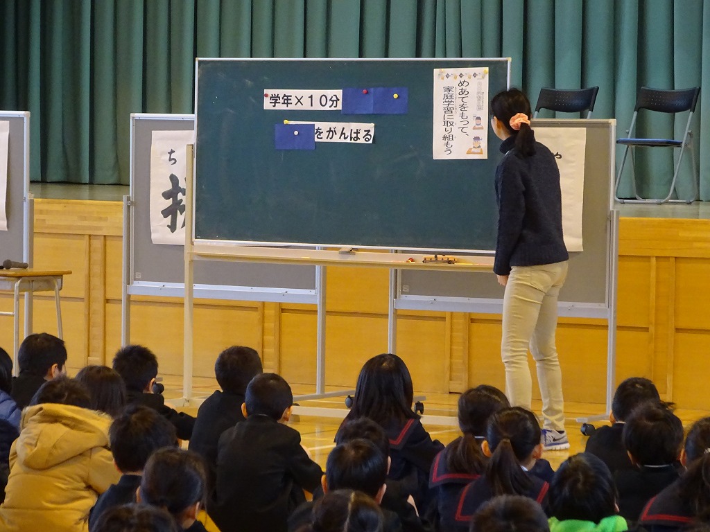 学習目標「めあてをもって家庭学習に取り組もう」の話や