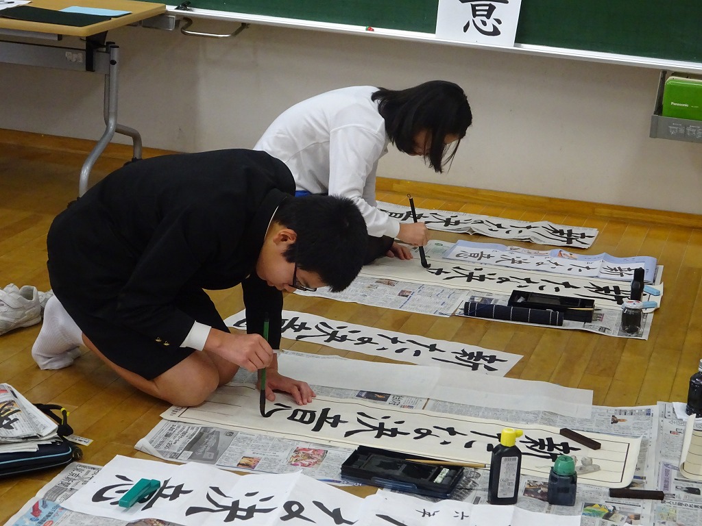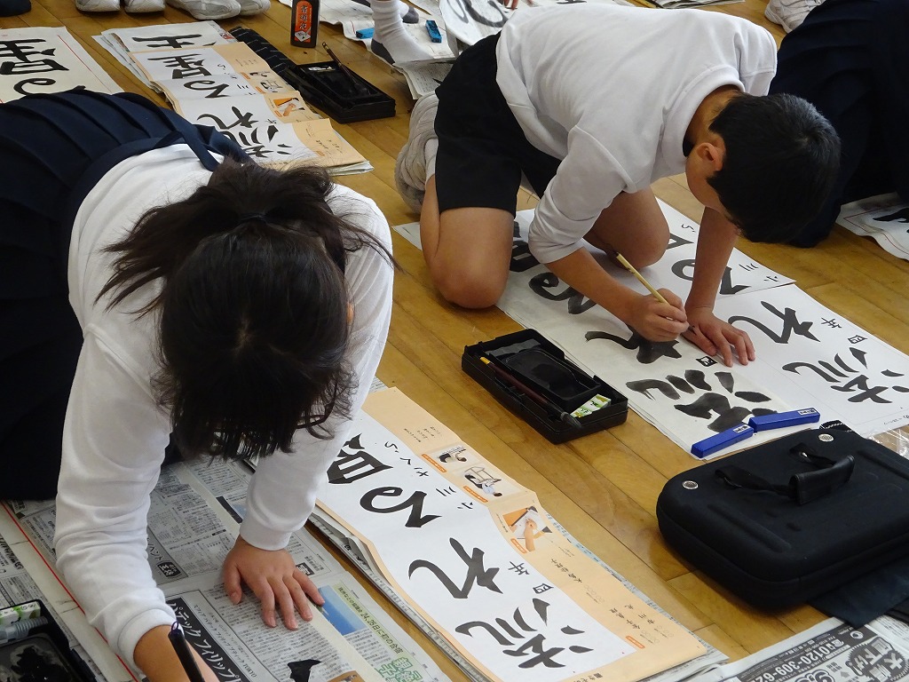 1月10日(火)3時間目、全校いっせいに「書き初め大会」が開始されました。