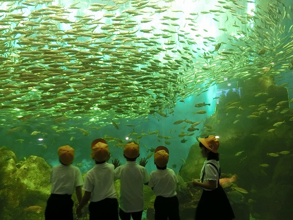 大きな水槽の中を泳ぐ魚たちから、目が離せないようすでした。