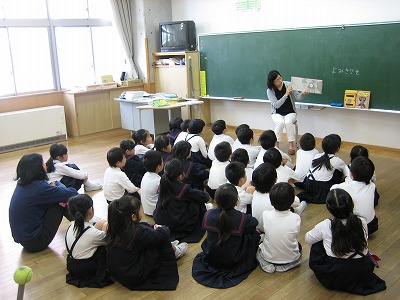 今年も図書ボランティアさんに、各クラス月1回、朝の読み聞かせをしていただいています。子ども達はお話の世界に引き込まれて、くい入るように絵本を見ています。子ども達は、この時間を楽しみにしています。