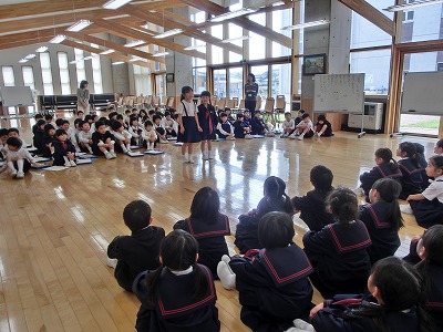 1年間でできるようになったことの紹介と、学校探検をしました。1年生はこれからの学習のことを教えてもらったり、知らない教室を案内してもらったりして、とても嬉しそうでした。