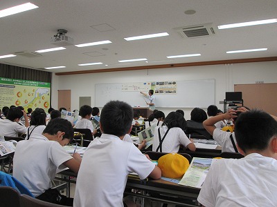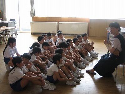 7月12日の昼休みに、図書ボランティアさんによる読み聞かせがありました。絵本や紙芝居を楽しみました。