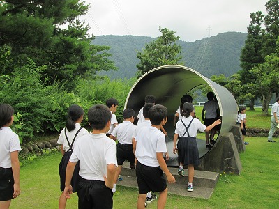 7月13日(金)に社会科の「水はどこから」の学習で『鶴来浄水場』と『手取川ダム』へ行ってきました。浄水場では、水をきれいにするためにたくさんの工夫があることを学びました。水の気持ちになって、直径180cmの水道管に通ってみました。また、ダムは水を確保するだけでなく、川の水の量を調節したり、水力発電したりするためにあることを学びました。今回の学習を通して、普段何気なく使っている水ですが、わたしたちの生活を守るためにたくさんの方々が働いてくれていることを知りました。これからは感謝して、水を大切に使っていきたいです。