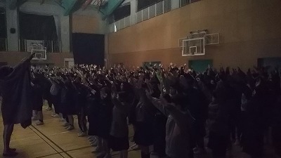 体育館には本格的なステージが作られ、それを見た子どもたちは「おー!」「すごい!」と、普段とは違う体育館に驚いている様子でした。