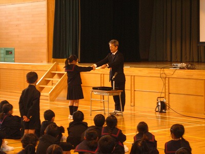 秋に取り組んだ書写や図画の作品で、多くの表彰がありました。また、読書の秋にふさわしく、読書賞を達成した児童も多かったです。
