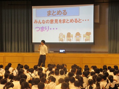 25日(水)6時間目,10月の学校集会と児童集会がありました。校長先生は,運動会のスライドショーを見せながら,子どもたちの素敵な姿を紹介しました。運動会での頑張りをこれからの学校生活に生かしていきましょう。