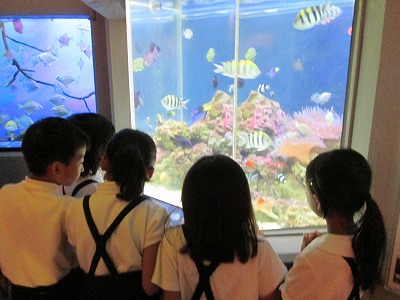 9月27日(金)、国語科「うみのかくれんぼ」の学習でのとじま水族館へ行ってきました。