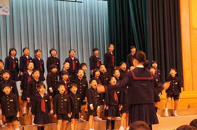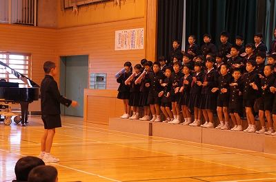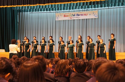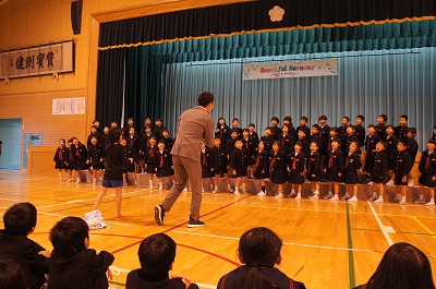 また、地域の合唱団「コールあじさい」の方々にも来ていただき、素敵な歌声を披露していただいたり、全校で合唱をしたりして、子供たちは素敵な時間を過ごすことができました。