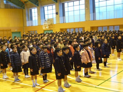 1月8日(水)の1時間目、3学期の始業式と児童集会がありました。