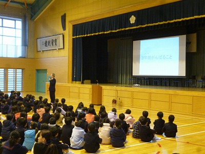 校長先生からは3学期に頑張ってほしいことについてお話がありました。「なわとび運動」「きれいな学校」「家庭学習」等を意識しながら、新しい学年を迎える準備をしていきたいですね。