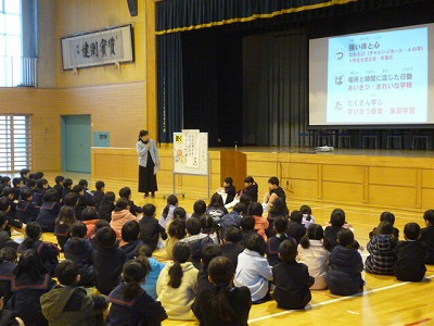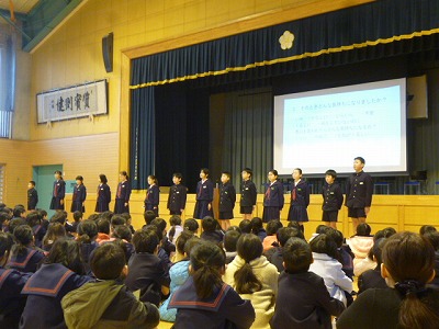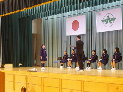 児童集会では、1月25日に行われる英語スピーチコンテストの代表者による校内発表がありました。本番までに練習を重ね、100%の力を出し切れるようにしてほしいですね。