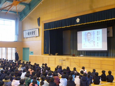 27日(月)6時間目に2月の学校集会が行われました。