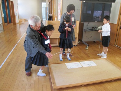 昔遊びを教えるために、ご家庭や地域のおじいちゃんやおばあちゃん20名が来校してくださいました。