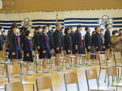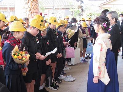 卒業式を実施するにあたり、町教育委員会、地域の方々、保護者の皆様のご浬明人ご協力をいただきましたことに熱く感謝申し上げます。