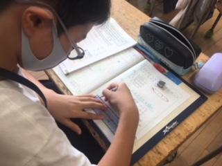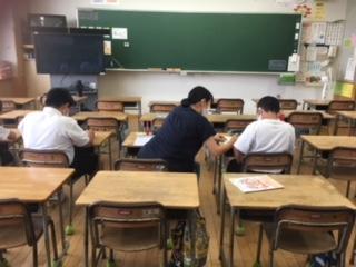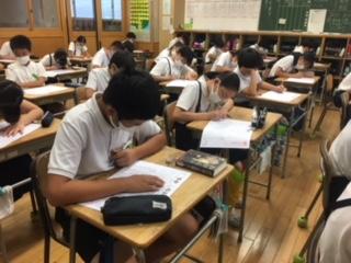 1学期最後の日。最後のまとめをと、たくさんのクラスでテストやテスト直しを行っていました。1学期に付けた力を確かめるように、みんな真剣な表情で臨んでいました。自分の課題を実感し、明日からの夏休みの間に少しでも克服できるといいですね。