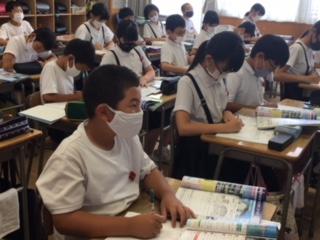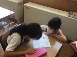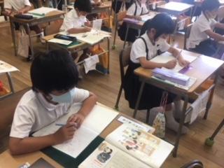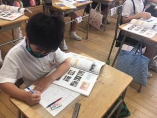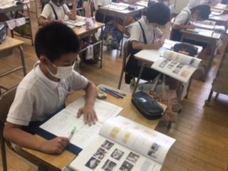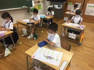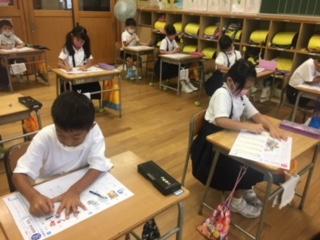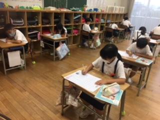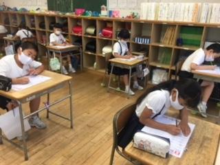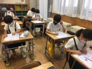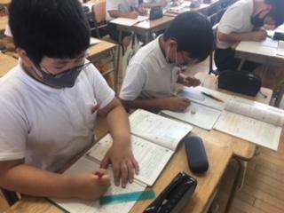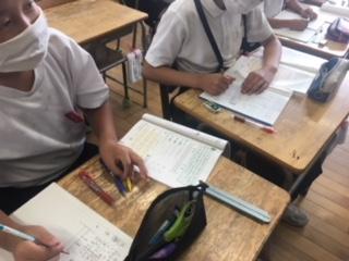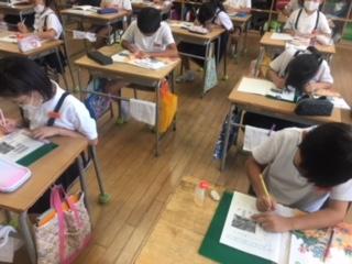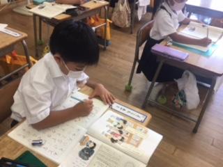 5年生の1限目の様子です。毎日猛暑日が続き、朝から汗ばんでいる子ども達ですが、1限目からしっかりと背筋を伸ばして集中して学ぶ姿が素敵です。気持ちを引き締めることで、暑さも忘れることができますね。子ども達のよい姿に、毎日元気をもらっています。