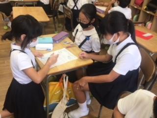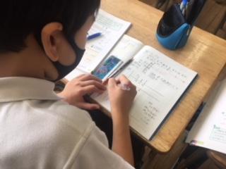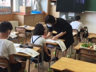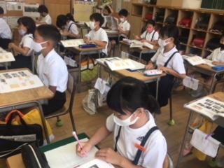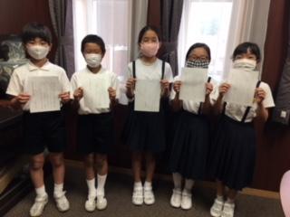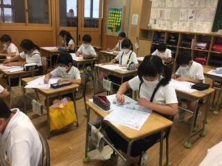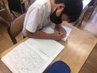 1学期末に、4年生が、冷感マスクを送って下さった町教育委員会の皆様に向けて、お礼の手紙を書きました。国語科の「お礼の気持ちを伝えよう」の学習で学んだ「初めの挨拶・本文・結びの挨拶・後付け」という手紙の型を確かめながら、一文字ずつ気持ちを込めて書いていました。担任確認の上送付するので、お届けするのは夏休み明けになりますが、津幡小学校の代表としての気持ちを受け取っていただけるといいですね。