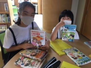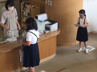夏休みまで、あと2日。学校では、最後のまとめの学習と夏休みに向けての準備をしています。図書室では、夏休みに読む本の貸し出しが始まりました。一人3冊借りることができます。選んだ本の名前は、「読書のあしあと」として記録に残しています。今年はコロナ対策のため短く制限の多い夏休みですので、ぜひたくさんの本を読んで過ごしてほしいと思います。