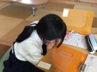 5・6年生は、詩を読んだ感想を感情を表す言葉を2つ以上選んでまとめます。難しい課題にも、辞書を使いながら一生懸命に取り組んでいました。