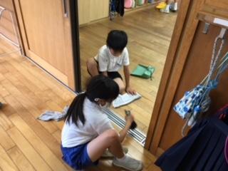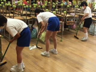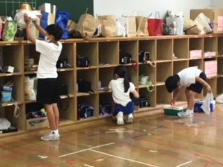 8月7日(金)1学期最後の掃除は、大掃除。普段できないロッカーや下駄箱など、いろんな場所も丁寧に掃除しました。床も水拭きをして、ピカピカになりました。一人一人が一生懸命取り組み、短い時間で学校中がきれいになりました。1学期、気持ちよく終わることができましたね。