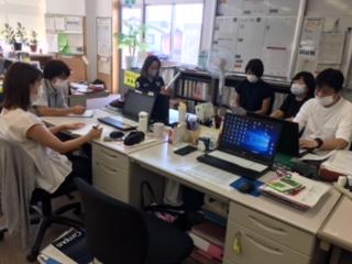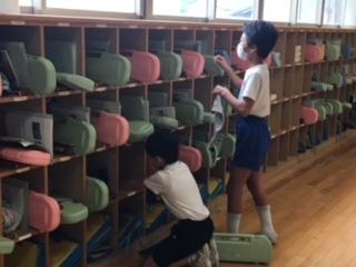 来週から2学期が始まります。学校では、教職員が、2学期の準備を進めています。18日(火)は、低・中・高学年のブロックごとに2学期の学習をどう進めていくか話し合ったり、特別教室の整理整頓の職員作業を行ったりしました。