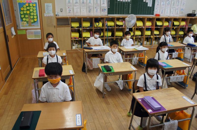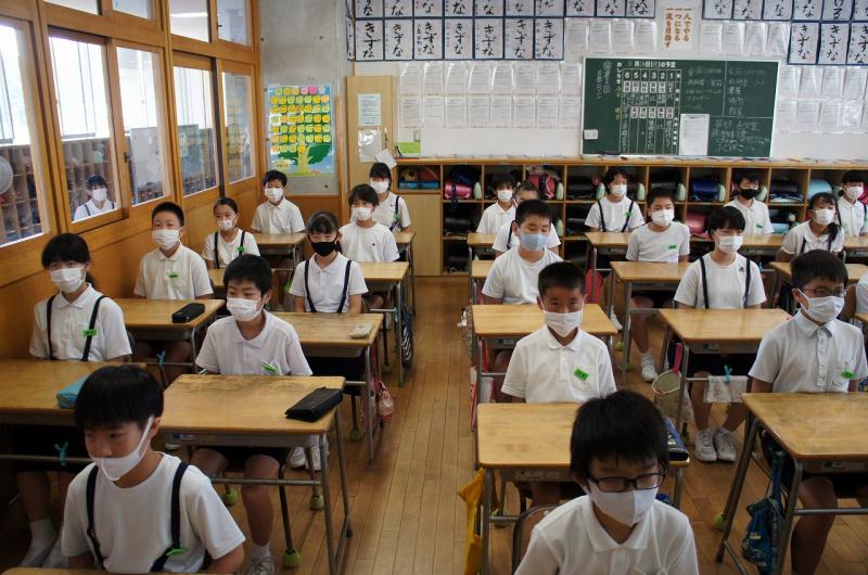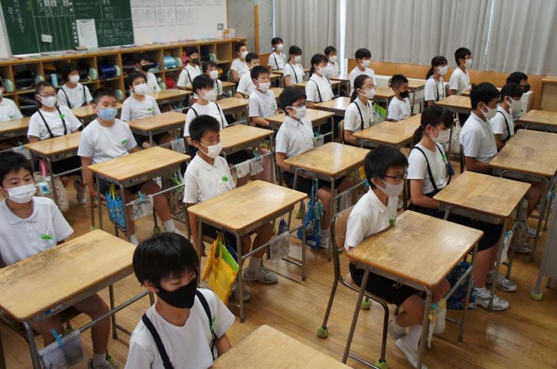 2学期スタートの始業式。司会は、教頭先生。今学期もコロナ対策のため、放送による始業式となりましたが、どの教室も姿勢よく聞く子ども達の姿から、気持ちも新たに頑張ろうというやる気が伝わってきました。