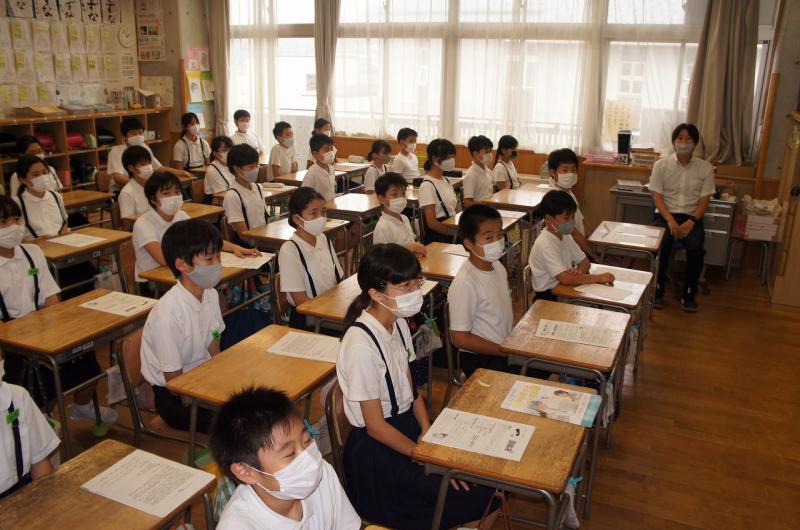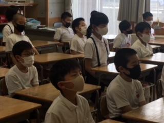 昼休みには、生徒指導主事の先生から、コロナに感染した方の不安や苦しみを伝え、全校児童に向けてコロナに対する差別や偏見・誹謗中傷等がない学校にしようと強く呼びかけました。