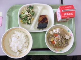 28日(木)【加賀献立】白ご飯・鯖の白麹焼き・加賀ッコリー豆腐サラダ・とり野菜