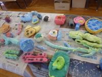 図工室では、同じく2年生が紙粘土のマグネットを作っています。