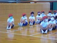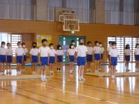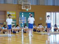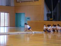 6月1日の器械運動交歓会を前に、4年生が3年生に演技を見せてくれました。